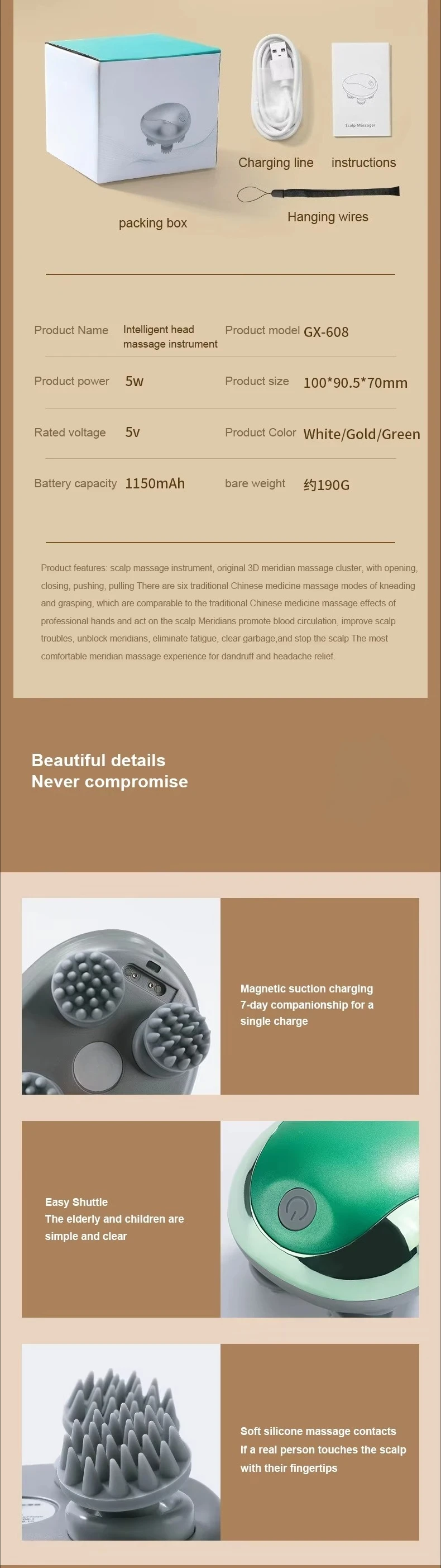 The cat head massager is designed to offer an unparalleled relaxation experience. It gently stimulates the scalp, helping to relieve tension and stress. This portable device fits comfortably in your hand, so you can use it anywhere. Whether you're at home, in the office, or on the go, the soothing sensation provided by this massager can enhance your mood and revitalizing your mental state.